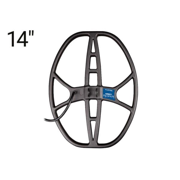 Deep Detection: This 14-inch-size searchcoil provides 25% more ground coverage than an 8.5” x 11” searchcoil. It is perfect for large fields and for hunting deeply buried coin and relic caches.