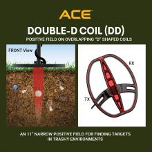 Excellent Target Separation: Due to its DD configuration, the ACE Raider searchcoil enables easy separation and target identification of multiple adjacent targets, beneficial in areas where there is an abundance of metallic items.