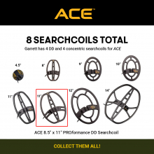 The ACE 8.5" x 11" PROformance DD Raider searchcoil is the perfect size coil for open field searches. Engineered for use with Garrett ACE series metal detectors, the Raider coil provides great coverage area, easy target separation, and excellent detection depth. This highly sensitive coil is durably constructed in a completely waterproof housing and comes with a full 3-year warranty from Garrett.