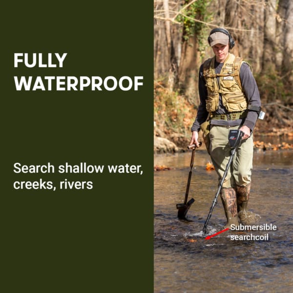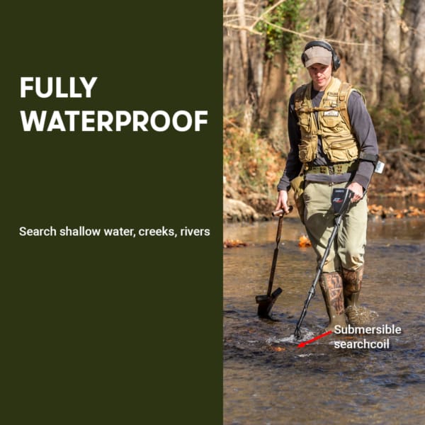 Fully Waterproof: The entire searchcoil can be submerged while searching for lost treasure in lakes, streams, and oceans.