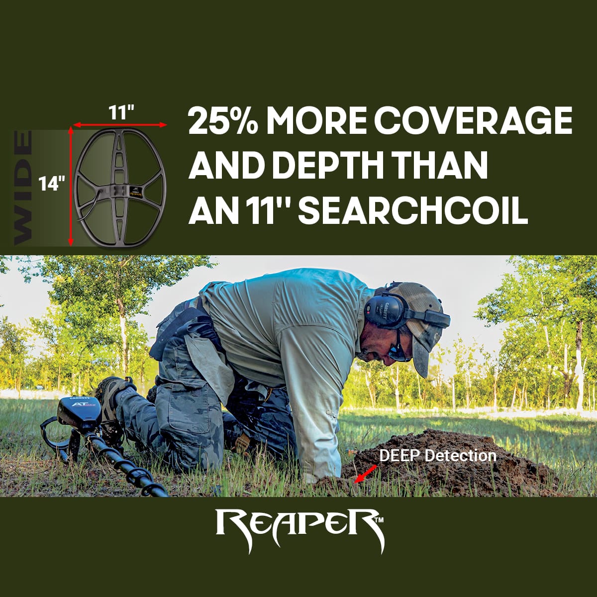 Cover more ground with the “AT” 14″ Reaper coil. Compatible with Garrett AT series detectors.