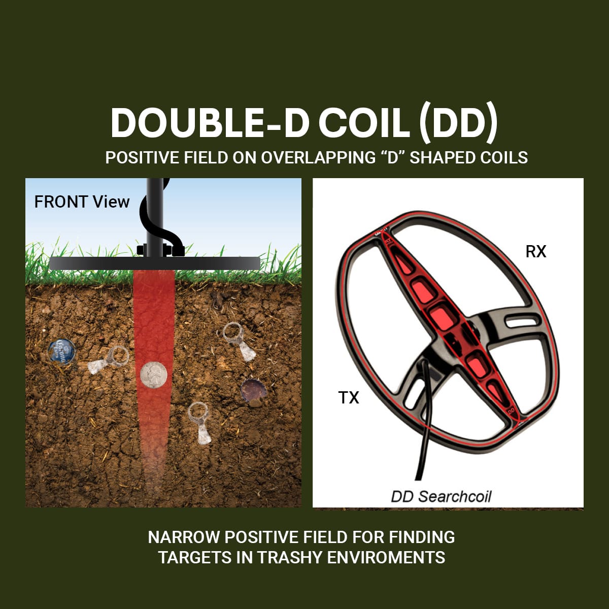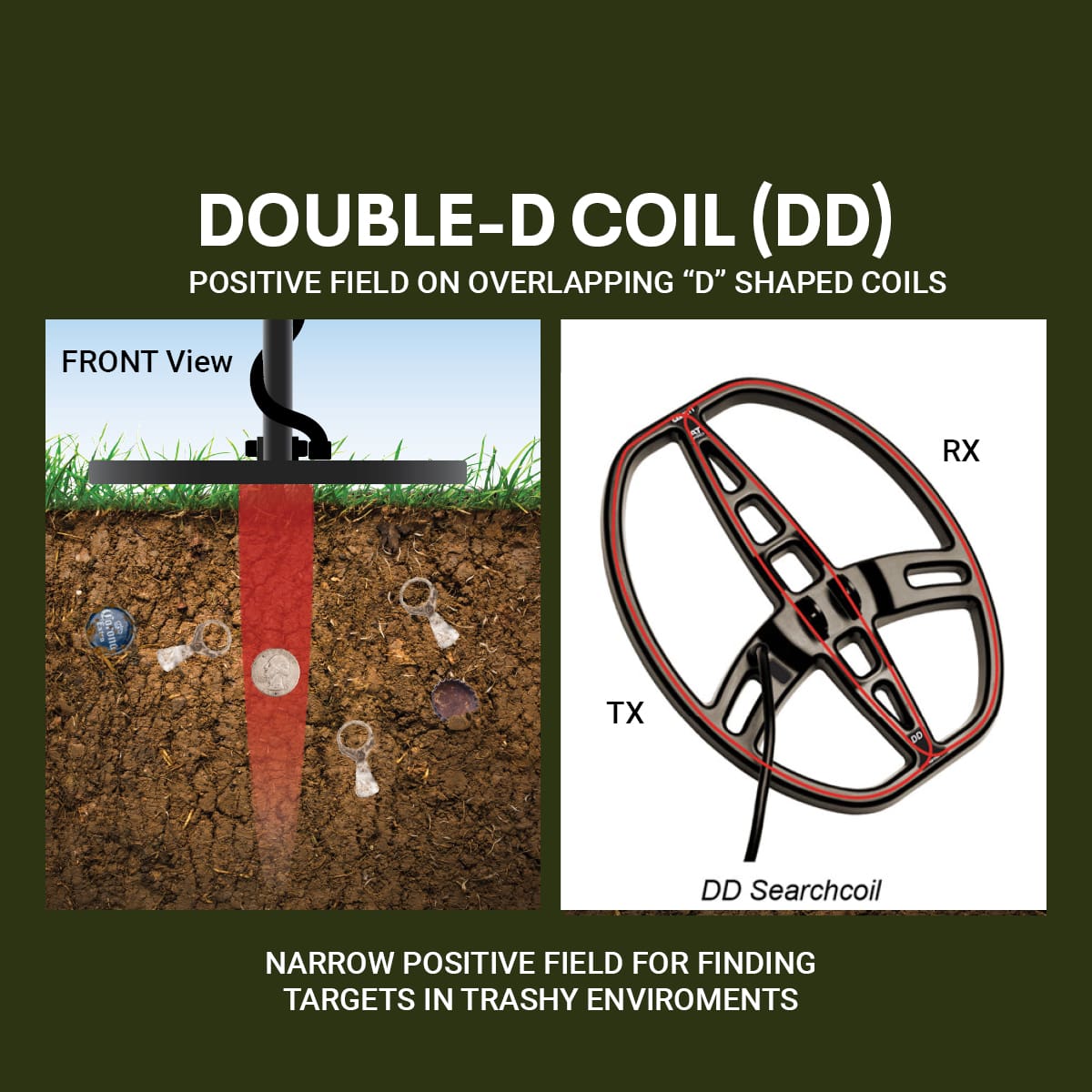 Deep Detection: This 11-inch-size searchcoil provides excellent detection depth on coin-sized and larger targets and offers smooth operation, even in highly mineralized soils and on saltwater beaches.