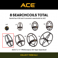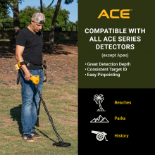 This searchcoil is designed to work with traditional ACE model detectors, such as: ACE 100, ACE 150, ACE 200, ACE 200i, ACE 250, ACE 300, ACE 300i, ACE 350, EuroACE, ACE 400 and 400i.