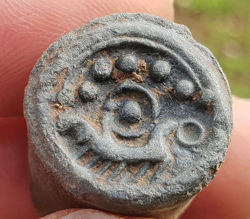My international favorite find for April 2019 is the B.C. Coin Matrix, found by Paul S. from the U.K. with his AT Pro.Paul’s story: Hi all at Garrett. Day started like normal. About 2 hrs into a dig with a group of friends I got a really strong signal on my Garrett AT Pro about 5 inches down found a peace of bronze with strange markings on one end. As this is my first year of detecting I was unsure of what it was I put it into my bag and carried on searching. A bit later on I showed it to my friends that’s when the day went a bit crazy.