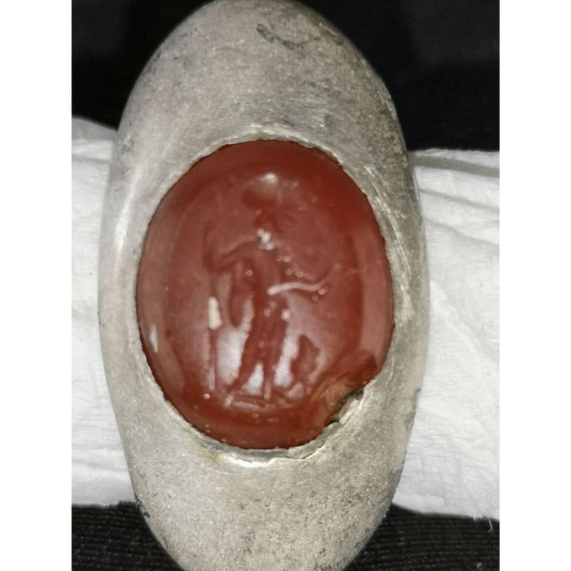 Samo’s success story: Hello! It is a Roman silver ring with a stone and an engraving, weighing 13.45 g. My faithful companion found him in the woods in a field near a small cave.