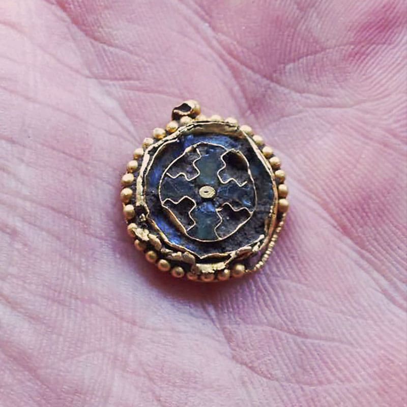 My International favorite find is the Gold Pendant from the Viking Age, found by Martin N. from Denmark with his AT Pro.Martin’s Story: “Hereby my best finds of all, it started with I went and searched on my best field, when I started to think, how cool it could be to find a viking gold ring! I had found more viking finds in the field before. Don’t know if the gods listened to my dream, but 10 metres longer I got a scale 45-50 target id. began to dig, and something goldish came out! My heart was pounding. a ring it was not, however, a gold pendant from the viking age!!! Over 1000 years old. My life’s find was accordingly done. Regards, Martin from Denmark!”
