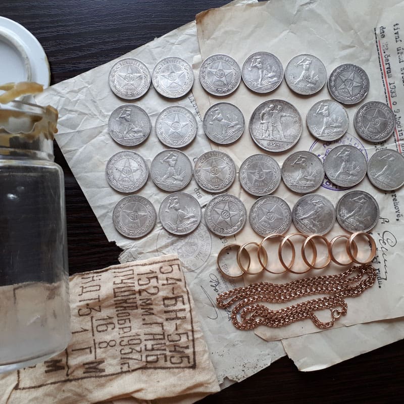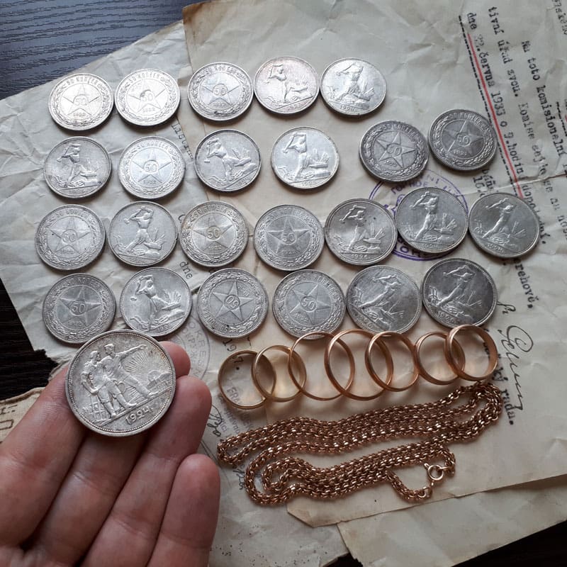My international favorite find for January 2019 is the Silver and Gold Glass Jar Cache, found by Oleksandr I. from Europe with his AT Pro.Oleksandr’s story: I dig with Garrett for 5 years. This winter (26 January 2019) I was lucky to find a glass jar. In the jar was: 24 silver 50 kopecks, one silver ruble, 7 gold wedding rings, and one gold chain. This dates to: 1920-1930s! Total weight silver: 234 grams (8.25 oz); Total weight gold: 35.5 grams (1.25 oz). I found them only thanks to Garrett AT Pro! Thank you for such a great metal detector. 🙂