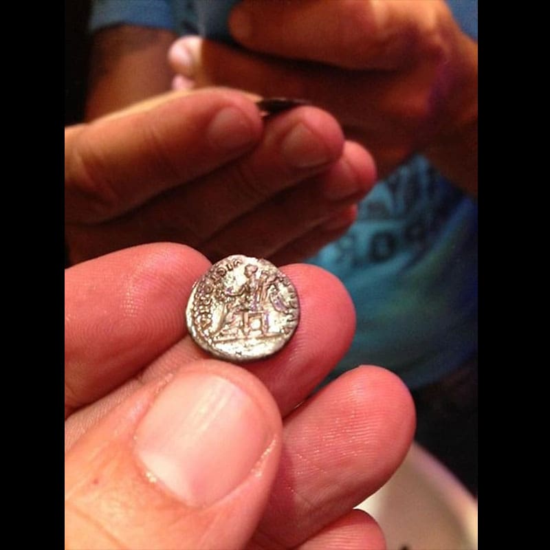My second favorite international favorite find for July 2015 is the Silver Roman Coin Titus, Quinarius, discovered by Paulo P. from Portugal with his AT Pro.Paulos story: “I’ve been using Garrett for more then four years. First an Ace 150, then an AT Pro. I like it so much that i can go anywhere with it. I use it in the ocean water, sand, rivers and fields. No detector that i know of compares to this one. I had great success with it. I found more than 150 grams in gold rings, loads of coins, and this month I found a rare roman coin. I couldn’t believe it! i heard a noise that could be something good. It was not loud because most roman coins are small. It was in the middle of the roots of grass. I couldn’t believe it, I am so happy with it, to find something almost 2000 years old! An archeologist helped me identify it: Titus (A.D. 79-81), quinarius. Obv. IMP TITVS CAES VESPASIAN AVG P M, Laureate head right. Rev.VICTORIA AVGVST, Victory seated left holding wreath and palm. RIC (1st edition) 35a, A.D. 79-80. Very scarce coin. Thank you Garrett!!”