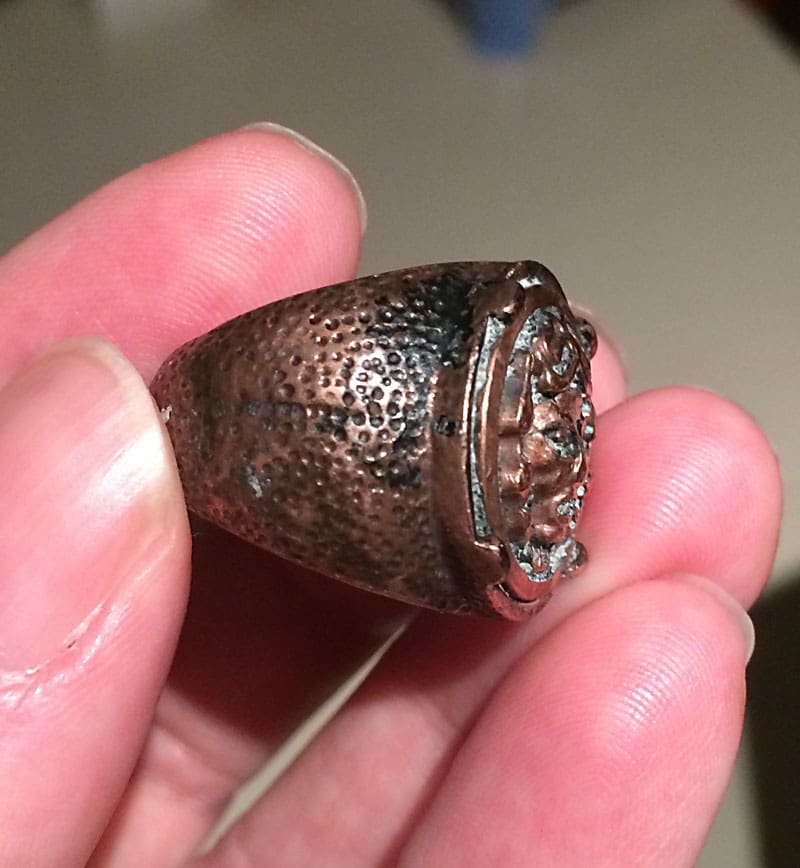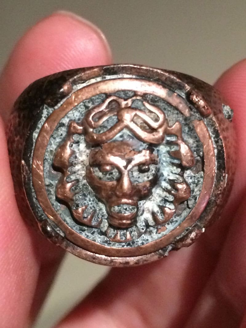 My second international favorite find for July 2019 is the New Zealand Ring, found by Leigh H. from New Zealand with his Ace 400i.Leigh’s story: My best find so far! I found it on a beach in New Zealand this month. I was using my Garrett Ace 400i. I was amazed how deep this was on the beach and when my wife and I dug it out it was unrecognisable as it was encrusted in a black type of rock like material. We took it home and carefully removed the crusty material to reveal this ring. It looks very old and hand made from some type of bronze or copper.