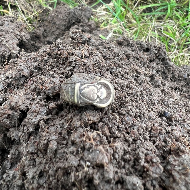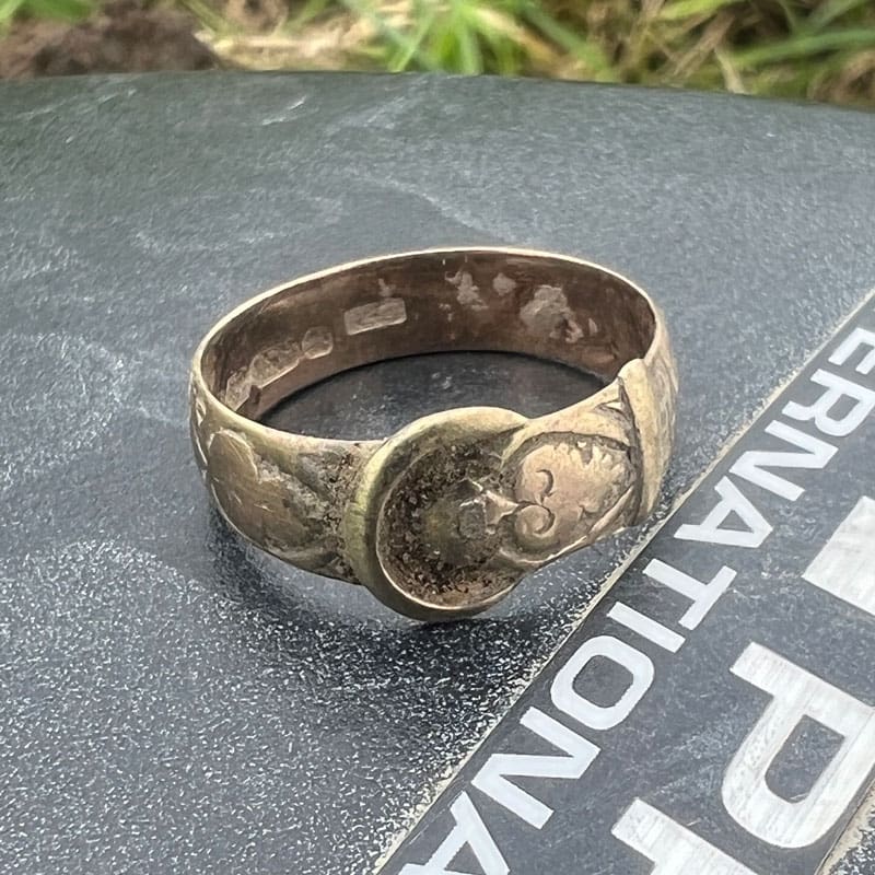Congratulations to our International Favorite Finds winner Martin S. from Europe!Martin S. was using his AT Pro on a local permit that he always hunts. He had a dream that one day he would find a gold ring while detecting this field. On his last signal, he dug up a 1886 9-karat gold buckle ring! He writes, “Love this hobby and it is lovely to find something that has been lost in time.”