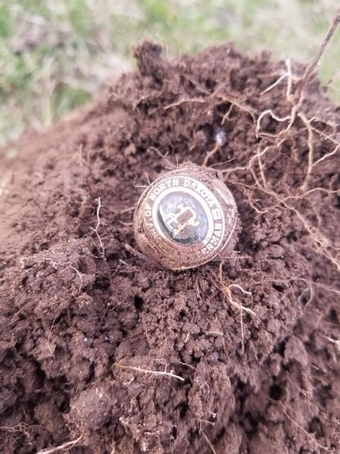My international favorite find for June 2020 is the University of North Dakota Class Ring, found by Jason B. from Ontario, Canada with his AT Pro.Jason’s story: Good morning, I would like to submit a story on behalf of my husband, Jason. My husband and I both metal detect and have been for almost 5 years. We often go on hunts together. This past May, I found an old baseball diamond only 10 minutes from our house. I knew it was old because across the street is an 1800’s schoolhouse. We couldn’t wait to go check it out. The next day we loaded our machines into the car and headed over. I stayed on the perimeter of the property and he decided to do the outfield of the baseball diamond with his Garrett AT Pro. Within 30 minutes he was waving me down and I could tell he had a good find. By the time I made it over to him he was shaking with excitement. When I looked into the hole I saw a HUGE gold University class ring! It was crazy seeing that big chunk of gold in the hole and we were both stunned! We got home and washed it up to find that the ring was from the University of North Dakota’s graduating class of 1969 and that it was engraved with initials.