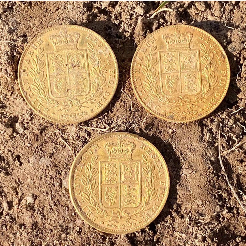 My International Favorite Find for June 2021 is the set of Three Gold Sovereigns, discovered by Mick S. from Australia with his AT-Max.Mick’s success story: WOW!! The three gold coins I found happened on Sunday, June 12th. It was a awesome day weather wise. I was with a group of 5 other fellow detectorists (4 of them swinging Garretts). There was finds coming out everywhere, a lot of early English coins but also American coins, Californian goldfield buckles, and an American powder flask. Americans featured heavily during the Australian gold rush in the early 1850s.
