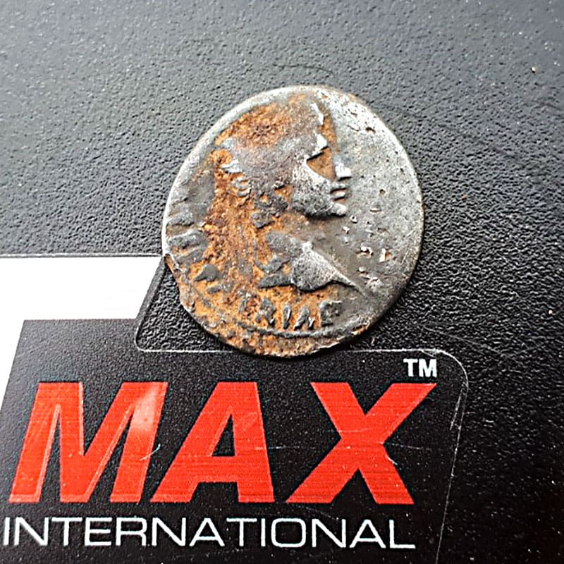 My international favorite find for May 2019 is the silver Roman coin (27 BC to 14 AD period), found by Marcel S. from Europe with his AT Max.Marcel’s story: I had received permission from a farmer to search his field on May 1 before sowing it in the evening. After a few coins, it came up as a tight 77, a beautiful sound on the Garrett AT Max. It was a Silver Roman coin, August Denarius, date 27 BC to 14 AD. After years of metal detecting with the Garrett, my first silver Roman coin who is now shining in the display cabinet. I am happy, happy, happy and I am proud to represent Garrett with the Garrett AT Max.