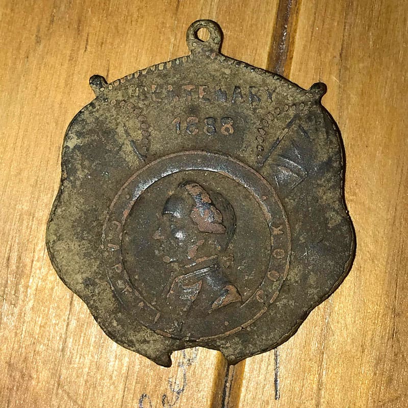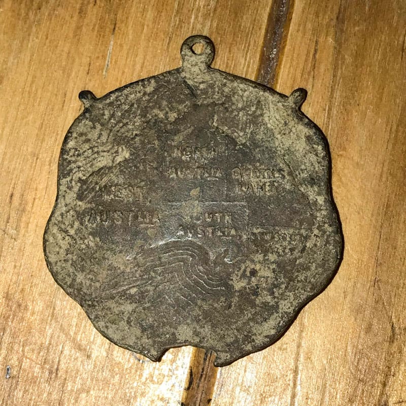 I only recently acquired the AT Pro International which means I am still getting used to all the tones and target ID’s. However, I got a solid 80 signal only at 5cm. I brushed away the leaf litter to reveal the medallion sitting on the top of the dirt. The medallion was issued in 1888 and commemorates the centenary of the colonisation of Australia. The front features Captain Cook, who originally settled Australia in 1788, and the back shows an old map of Australia and its colonies, before federation. Nowadays places such as ‘North Australia’ no longer exist.