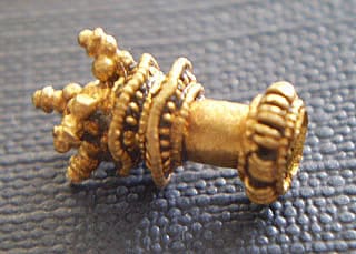My favorite international find for September 2012 is the Gold Medieval Crown Cufflink.Tamas H. from Hungary has been treasure hunting since 2005 with various Garrett detectors, including the GTI 2500, EuroAce, and the AT Pro. He travels to many European countries looking for ancient and Medieval artifacts. He recently discovered this very articulate hand-made gold Medieval cufflink with his EuroAce.