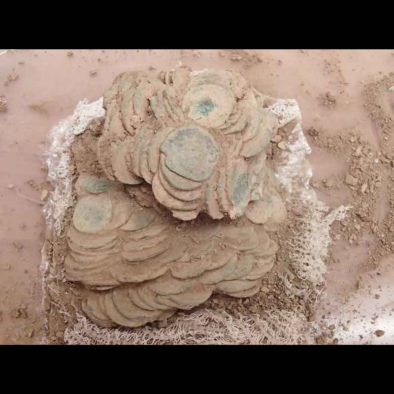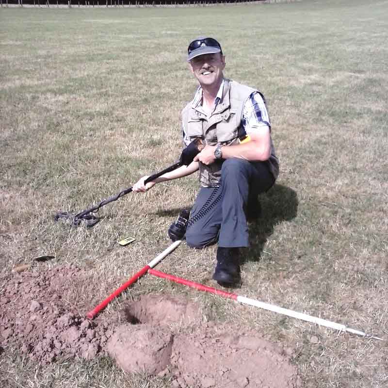 Martin details the discovery. “When we lifted the find it was found to weigh about 2.5 Kg and was buried in a bag. Then the long wait began as the British museum began to clean and preserve the find. It was discovered that there were 518 coins, all from the period AD 260-295 of various Gallic and Britannic emperors. The coins were buried in 3 separate hessian bags stuffed with leaves to keep the coins from clinking, then buried in a leather bag. The leather and leaves were still intact in places! The coins were declared treasure and were valued at £1619. Three of the coins are very rare and will be held by the British Museum as they have not got them in the national collection. The story was reported on regional TV and in the press, and I can now let you know how well my trusty Garrett has served me. This find is not very valuable, but it has meant that the museums have learned more about the less common way of burying hoards in bags not pots, and I have added to the national collection in London, not a bad days work!”