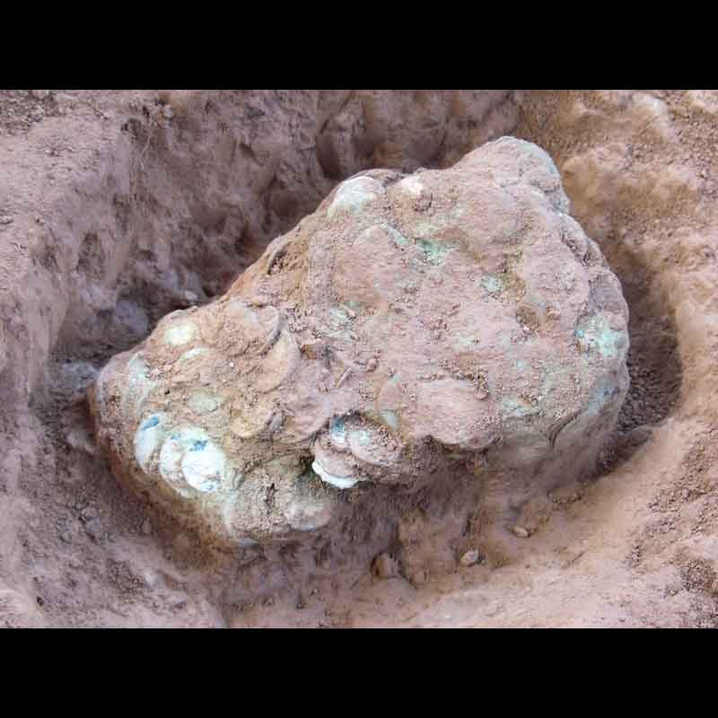My favorite international find for September 2015 is the 518 piece Roman Coin Hoard of the Gallic Empire and Britannica, discovered by Martin F. from the U.K. with his Ace 250.Martin details the dig. (edited) “Due to secrecy, the British Museum has only just released the info to the public. Whilst searching a new field on July 25th, 2013 with my trusty 9 year-old Ace 250 with double D coil, I had been searching for over an hour with my friend Jeremy when I got a deep signal but good. I started digging and after 14 inches, nothing but the great signal. I called Jeremy over as he had a pinpoint probe and mine was broken. We scanned the hole and carried on digging. We hit a stone and on pulling it out we found 4 Roman coins stuck to it! I shouted stop! Upon examination we found coins loose and stuck in the soil, all bronze and in good condition. We knew it was a hoard, but how big? We stopped and contacted the museum finds officer and the land owner who both came out very excited. It was agreed to excavate the hoard in 3 days time, so we had to bury the find again and maintain complete secrecy to protect the site. We came back 3 days later with the finds officer and did a complete 8-hour excavation, documenting the dig in photos, drawings and video.”