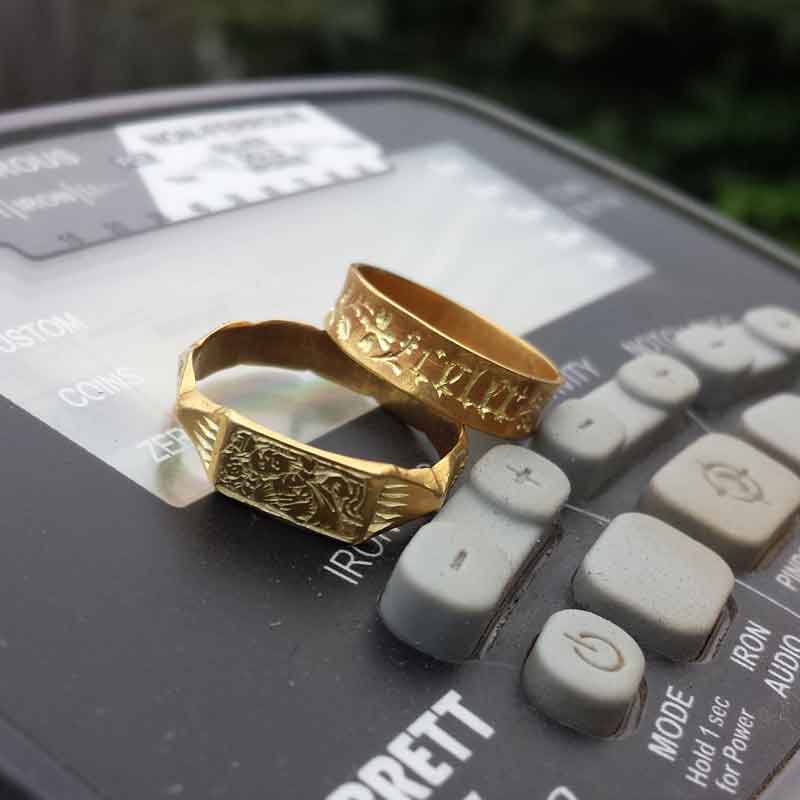 My second favorite International favorite finds are the Two Gold Medieval Rings, discovered by Michal P. from the U.K. with his AT Pro.Michal said, “Let’s go metal detecting to a friend from my Team of Nottinghamshire at work and we booked a half-day off. We went to our old permission that didn’t promise much. Started walking up into the bottom end. First signal – a bullet cartridge. The soil was rock-solid. Second signal 58-61 on my AT Pro!!! And BOOM!!!! My first Gold and not just one!! Two Gold medieval finger rings. Found together, one inside the other. c.1400 -1550. First is iconographic with depiction of St. Christopher and inscription. Second is inscribed. All objects were given to the local museum. I love my Garrett AT Pro!”