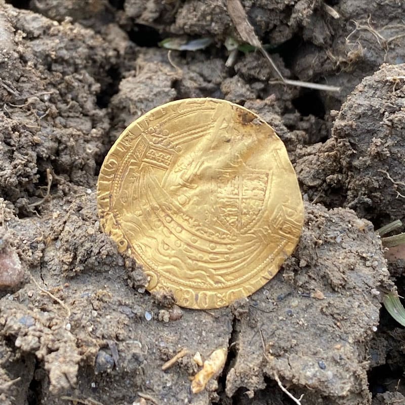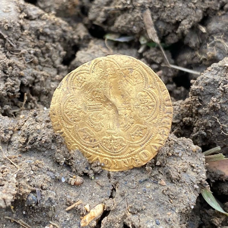 We were out detecting yesterday (August 31 2020) when my Garrett (on the Jewellery mode) indicated a target of 80-82. I thought it was going to be a bottle top as I’d dug up lots that morning with the same target ID. My heart skipped a beat when this beautiful gold coin appeared 10 to 15cms deep in the hole. Isn’t it gorgeous? I’m at the start of my metal detecting journey and I’ve had my first Gold Coin already. It’s been identified as an Edward III post-treaty period Half Noble from between 1369-1377. Minted in London.