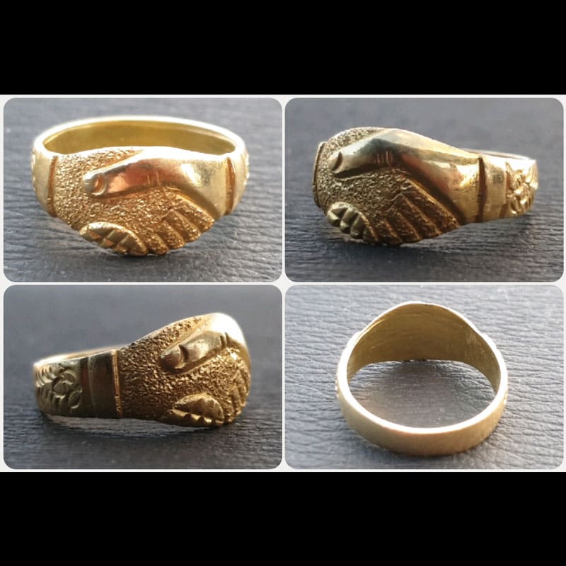 My International Favorite Find for September 2020 is the 18k. Gold Claddagh Ring, discovered by Jasja H. from Europe with her AT Max.Jasja’s success story: It was a wet and windy day 2 weeks ago. Still suffering from the summer heat of the weeks before when it was simply too hot to go out with Max, we decided to go out and enjoy this cooler weather and hope for some nice finds. To make a long story short….after about 40 holes with just junk in it…and being ambushed by the heavy rain and wind, I gave up and started making my way back. Still swinging Max around because, who knows, maybe one more signal…maybe one more shot to clear my mood.
