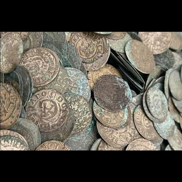 My International Favorite Find for August 2021 is the 17th Century Copper Coins Hoard, discovered by Andrey F. from Europe with his Ace 400i.Andrey’s success story: The best day of the passing summer. The usual hot weekend in August did not bode well for anything unexpected. I sat on the veranda drinking my morning coffee. Suddenly my friend called. Two hours later, sweating under the last rays of the setting summer sun, we made our way with metal detectors along the vast harvested wheat field. Suddenly, there was a loud bell sound on my Garrett ACE 400i. After sweeping the coil at different angles, I realized that there was something interesting underground! Yes! Love that Garrett bell trill! I started digging. A silhouette of my comrade could be seen in the distance.