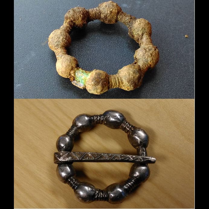 My first international favorite finds for February 2016 are the Iron Age Fibulae and Ring Brooch, found by Rune N. from Norway with his AT Pro.Rune’s story: “Hi. It’s winter in Norway and the ground is hard as rock most places, so I decided to take a trip to the beach together with a friend to see if we could find any rings or clad. We found nothing, so instead we tried the woods close to the sea in case the ground was “diggable” there. Three minutes into the search I got this iffy signal I thought was a button or bullet casing. It came as a shock when I saw what tumbled out of the ground. Two fibulae (iron age brooches) and one ring-brooch, all three about 1500 years old. I might have stumbled upon an ancient woman-grave. Archaeologists are deciding if it should be inspected further. A friend of mine managed to make a nice silver copy of the ring brooch as a memory of my discovery.“