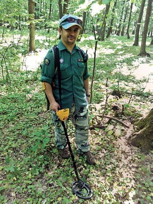 My Favorite International find for June 2013 is the Romanian Ritual Rings and Coins, discovered by Adrian C. from Bucharest, Romania with his Ace 250.Adrian exclaims, “I am happy to announce that this month I got the strike! On the edge of a country road, in the shade of a forest, my metal detector got crazy. I thought I got over a can, but curiosity made me dig to see what was hidden there. Something yellow got hooked in a clod and started to roll. I was thinking it was an ordinary stopper from a bottle of beer, and silly me was dreaming of gold pieces. I took the clod and crushed between my fingers. I could not believe it! A beautiful gold ring stuck between my fingers! My pulse got crazy, and the mosquitoes who were attacking me could taste me for a long time.”