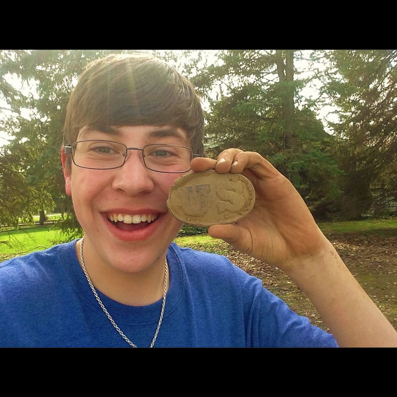 “I was metal detecting at a 1700’s Log Cabin Site that was used up until the late 1800’s and came across a solid 81 signal on the AT Pro. It was about 8 inches deep and had to dig through a ton of roots to get it, but I finally pulled it out of the hole and saw it was my very first U.S. Belt Plate from the Civil War! All the hooks are attached and has all the lead back filling! I just started metal detecting about a year ago, I am 15 now and plan on detecting forever!”