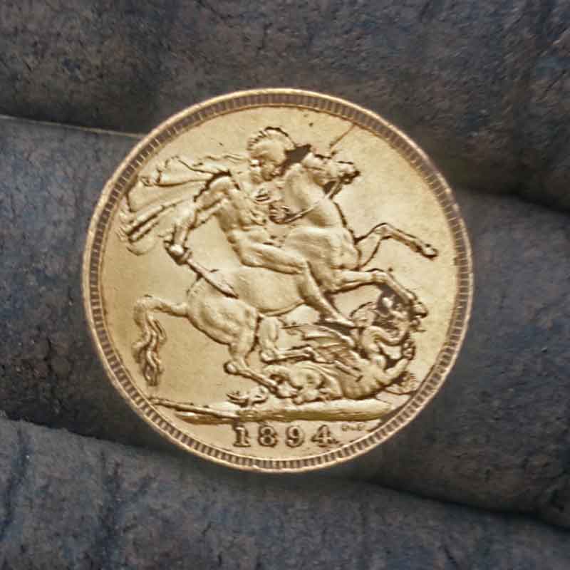 MIchael’s story: “My find of the month and probably the year! A 1894 Queen Victoria full gold sovereign. Me and my detecting buddy braved the stormy weather to join our club on a dig in Lancashire England. 30 minutes into the day my Garrett Ace 250 gave a slamming hit at 4″. I dug up the clod and seen a yellow coin fall out. At first I thought I had found a euro ten cents (these come out yellow/gold when found) but I picked it up and noticed queen Victoria. My heart stopped for a second as i realised what I’d found. My first ever gold coin!!!! Weighing 7.95grams. I was over the moon and I’m still smiling now. Thanks Garrett for such a great machine.”