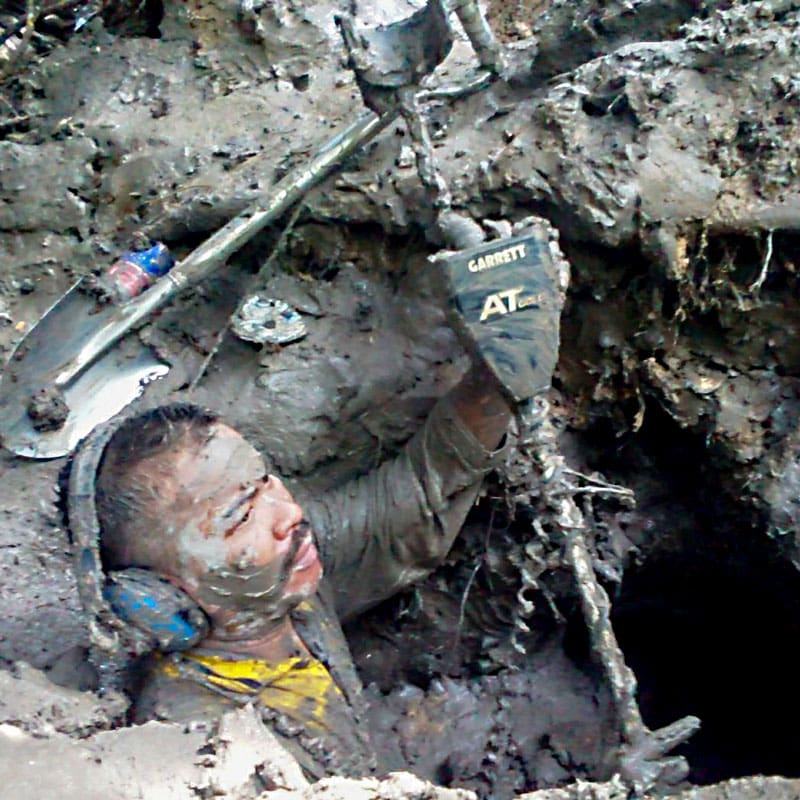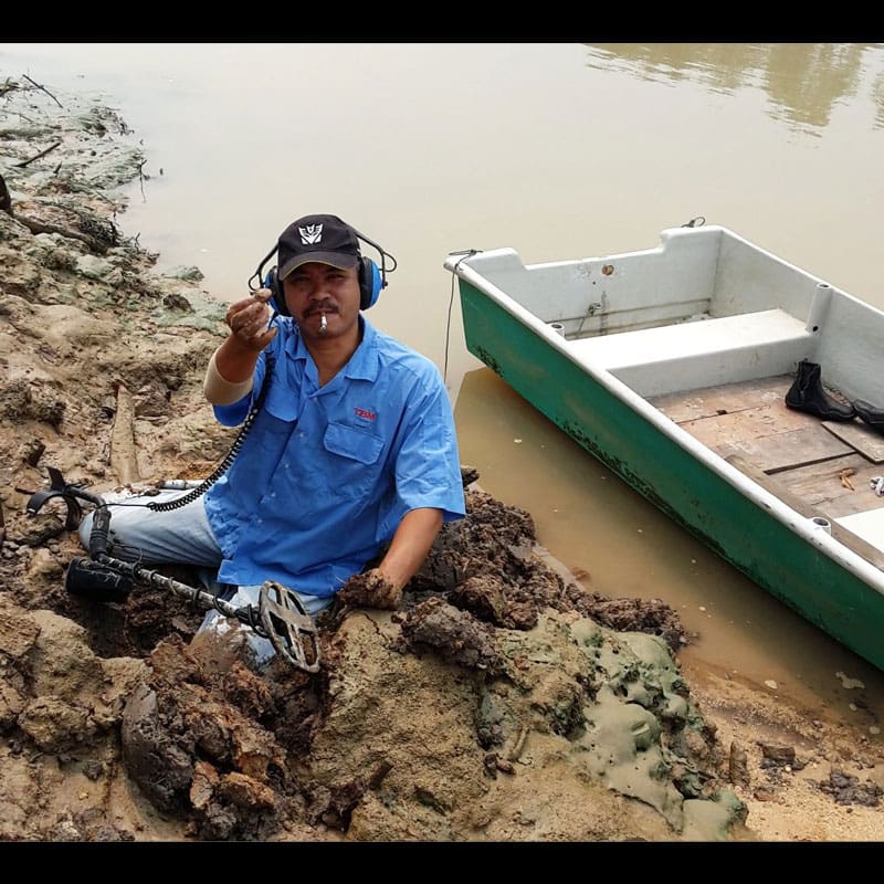 Raja’s story: (edited) “My hometown, Kota Tinggi (High Castle) is a capital of Johore state from year 1528 till 1760 before move to Johore Bahru, opposite Singapore. During the Sultanate time, many traders come and go and make business there. At that time, river is the only route to reach the destination. War also happens there, and many coins drop and other items fall into the river. Time makes the river change from wide to narrow. The only way to know is to dig at the base level of the soil. The coins are made from tin, silver and gold, and are round, hexagonal and octagonal shapes. Words are written in Arabic scripture. The honorable name of the king and his title. Sometimes we also found weapons and other metal objects of silver and gold. Every time we go for hunting, we will play with mud. The condition of the coins in the mud is better and clear looking. Me and my team are very happy when using Garrett’s products. Best performance and sharp to detect the objects. From 2011 till now, I already expert using my Garrett AT Gold. Last time I have Garrett pointer, but lost in action.”