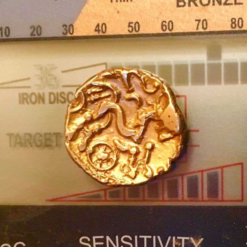 Congratulations to our International Favorite Finds winner, Bobbie J. from the UK!Bobbie said, “The place has been well and truly searched”. However, she thought she would go back out one more time for good luck. After ground-balancing her machine and taking her first swing, she got a consistent signal reading at 60. She dug up the target and couldn’t believe her eyes! It was a Celtic stater, circa 65 BC!