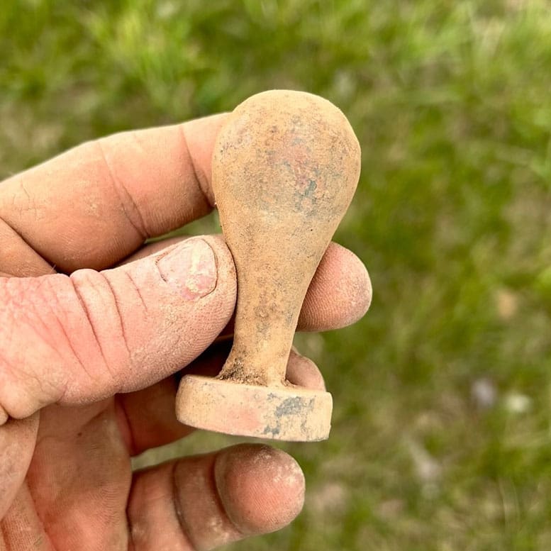Congratulations to our US Favorite Finds winner Travis P. from Missouri!Travis got a screamer of a signal on his AT Max and discovered a rare find. He was hunting in his favorite field and found a Wells Fargo wax stamp! Then, two feet away from him he found another one! He writes, “The stamps were used for when you wanted to ship silver coins that exceeded $25 to someone. It had to be privately sealed and stamped before shipping.”