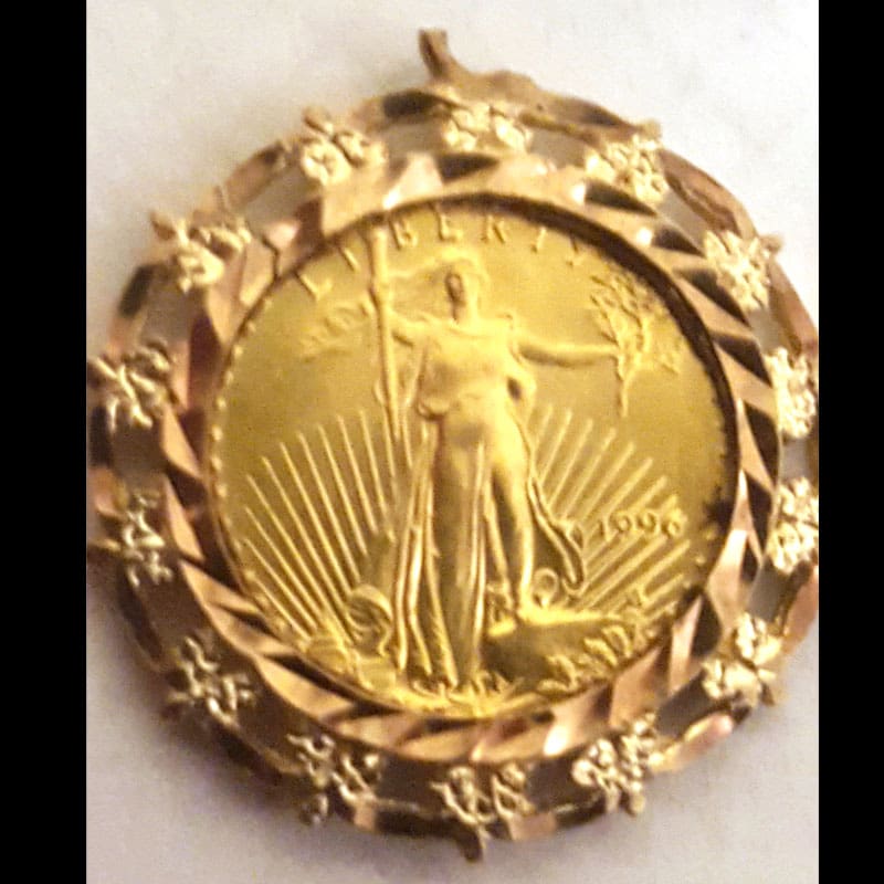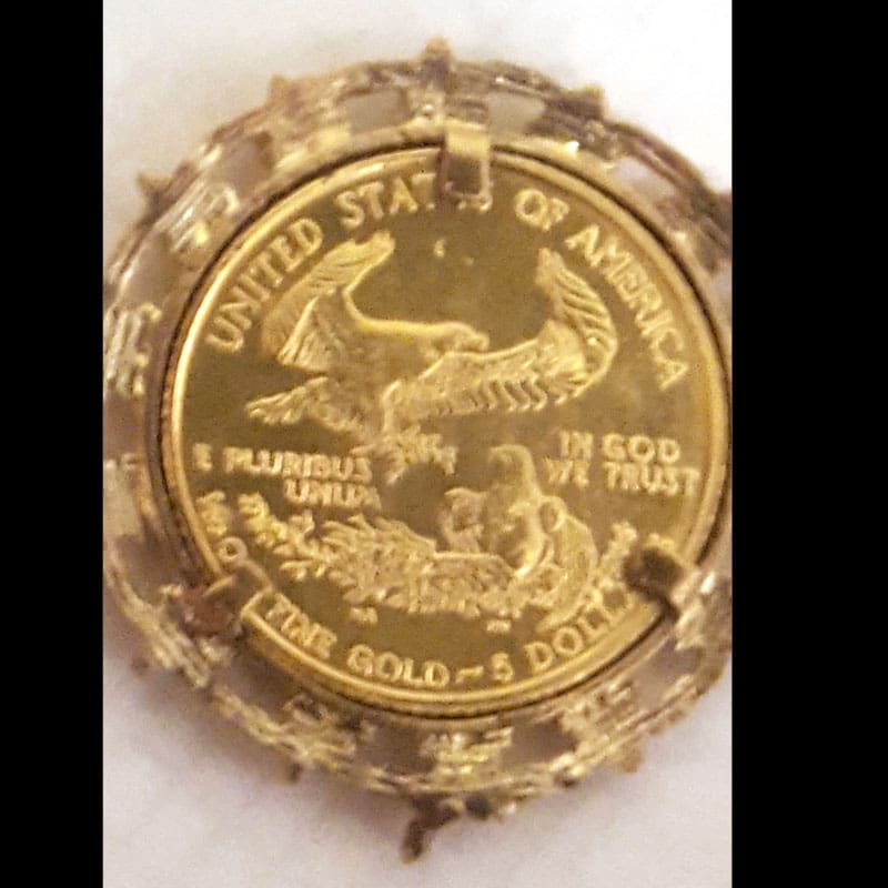 My fourth U.S. favorite find for August 2016 is the $5 gold coin necklace, found by Barry N. from Oklahoma with his AT Pro.Barry’s story: “While hunting a sidewalk area that had been turned up for a highway expansion, I found this 1996 $5 gold bullion coin. It appears to have been a necklace at one time.”