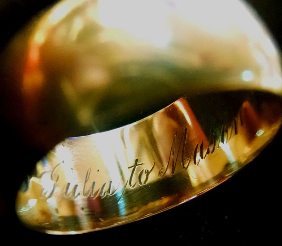 My second U.S. favorite find for August 2016 is the 18k Gold European cut diamond ring, found by Jim K. from Michigan with his AT Pro.Jim’s story: “First off I am very fortunate to have found a site that produces finds like this. Second I’m thankful to have a water machine that can handle the iron infested areas like my AT Pro can! I was working the iron again this day, already had a V nickel, a buffalo, a silver rosie and Washington. I was getting a little tired and thinking about calling it a day. I decided to push a little harder, just one gold, any gold and then you can quit, I told myself. I then picked out a nice crispy mid tone through the iron. I thought it was going to be another buffalo, but what I saw in my scoop was no buff. Sleeping with iron for over a century, it’s color was pretty off, but when I picked it up there was no mistaking the weight. Already excited I looked inside for karat marks, and was just blown away! It read “Julia To Mason Xmas 1890″ with the old style block mark of 18K! I immediately knew it was the best ring I’ve ever found with over four hundred preceding it. Turns out to be 9.9 grams of 18k, with a half carat European cut diamond. Not sure if I’ll ever top this find, but I know I’ll have a lot of fun trying to! Thanks Garrett!!”