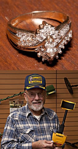 My favorite find for December 2010 is the 14k gold and diamond ring.Jon B. of Huntsville, TX was detecting under a ski lift in Ohio. In the same hole he dug two quarters, a dime, and then the ring. It had a lot of dirt on it and he thought it was probably costume jewelry. After returning home he cleaned it up and saw 14k inside the band. The next day he took it to a jeweler who appraised it at over $1200.