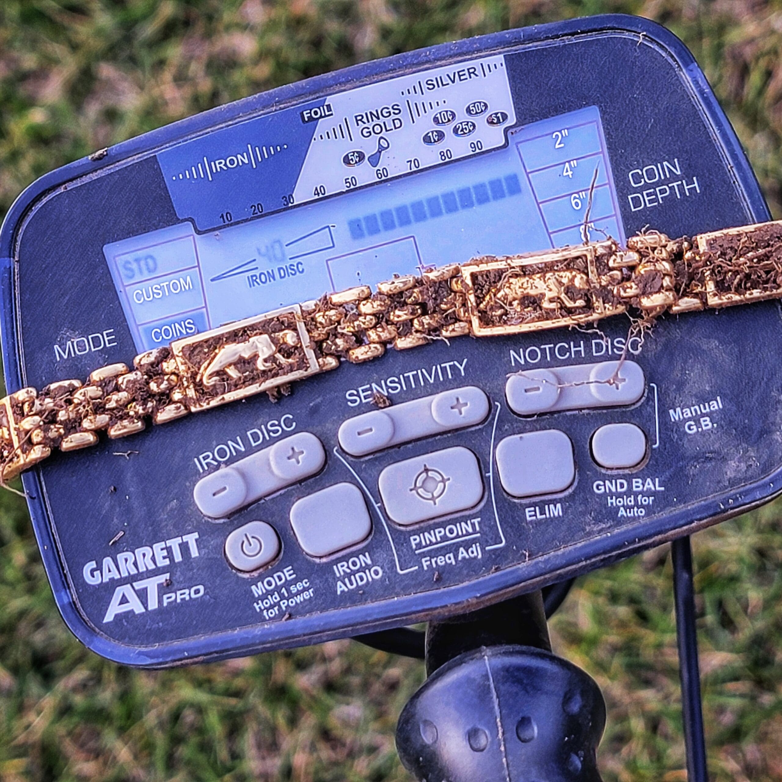 Congratulations to our US Favorite Finds winner John S. from Nebraska!John’s final hunt before New Year’s Day proved to be a brilliant year-ender. At a local soccer field, his AT Pro gave a nice signal with a 47 Target ID. When he opened the plug, he found a man’s bracelet with an incredible panther design on it. It was shiny with no corrosion. “A few days later, I arrived at my favorite coin shop and as my friend scanned it with her XRF analyzer, I waited with bated breath,” John wrote. “She tried to keep a straight face but as soon as a smile came on her face, I knew that I had done well. Weighing 25.7 grams, it is 14k gold! It’s officially my first gold find and couldn’t be happier knowing that my Garrett AT Pro will be by my side to find the next incredible treasure in 2025. Thanks, Garrett.”