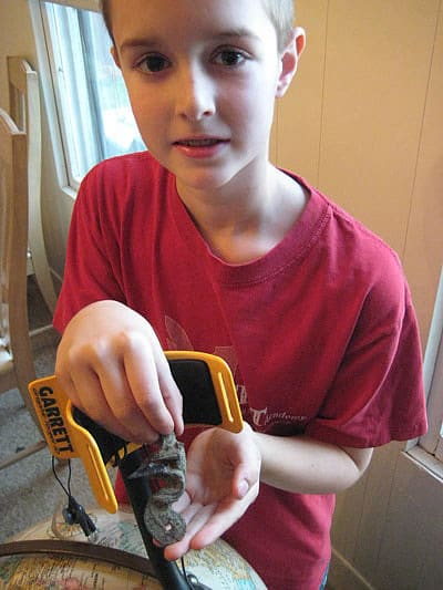 My favorite find for February 2014 is the Flint Lock, discovered by Joseph M, from Kelso, WA.Joseph M. is nine years old, but hunts like a pro along with his dad with their Ace 250. In his own words, Joseph tell us all about it. “Wow. What a new year! My dad and I left early on January 2, 2014 for a place on the Columbia River in Washington. My dad has an Ace 250. I don’t have a detector so I borrowed the neighbors who doesn’t use his (some other brand). I got tired of using it because it was too heavy, so I switched to dad’s Ace.”