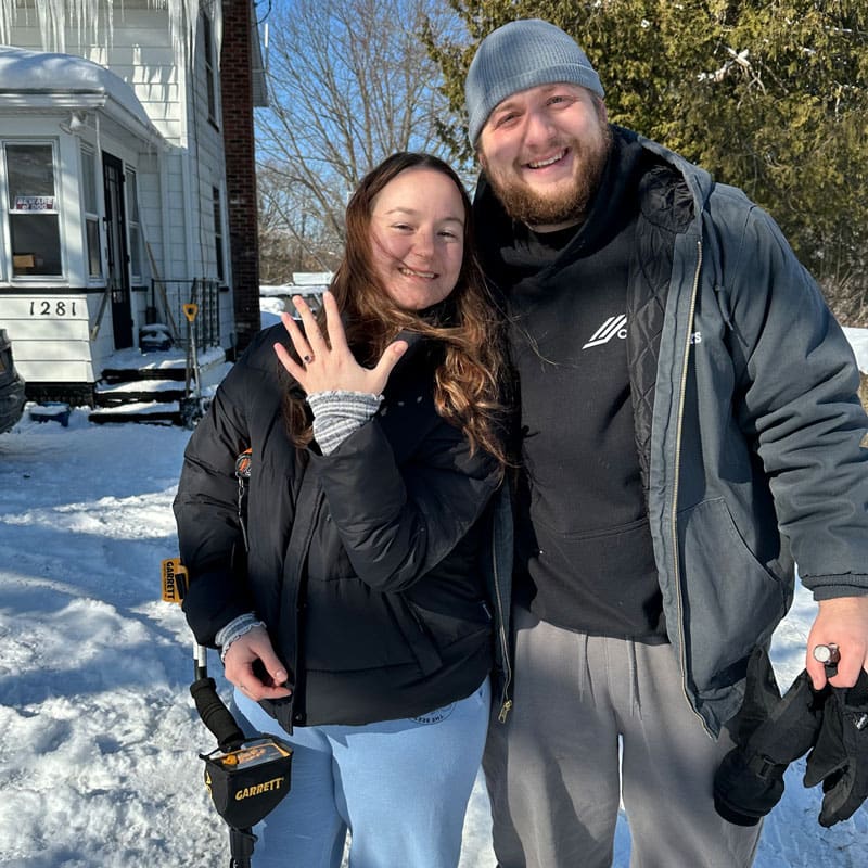 Congratulations to our US Favorite Finds winner Bob K. from New York!When Allisun lost her one-of-a-kind engagement ring in a 4-foot snowdrift, Bob knew his Garrett AT Pro was up for the challenge. Less than 5 minutes and a few careful swings later, there it was, diamonds sparkling in the snow! He writes, “The look on their faces, the happy tears, the hugs are why I do what I do. Helping people recover precious memories is worth more than any treasure I’ve ever found. A new adventure awaits and metal detecting their historic 1850s farmhouse in the spring! Shoutout to Garrett for making high-quality gear that turns moments like this into reality.”