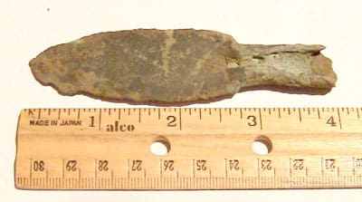 His wife bought him a GTI 2500 for his birthday last November. As always, the best place to learn a new machine is on your own property. After half an hour of searching with his new Garrett detector in his own backyard, Larry discovered a nicely shaped copper spearhead!