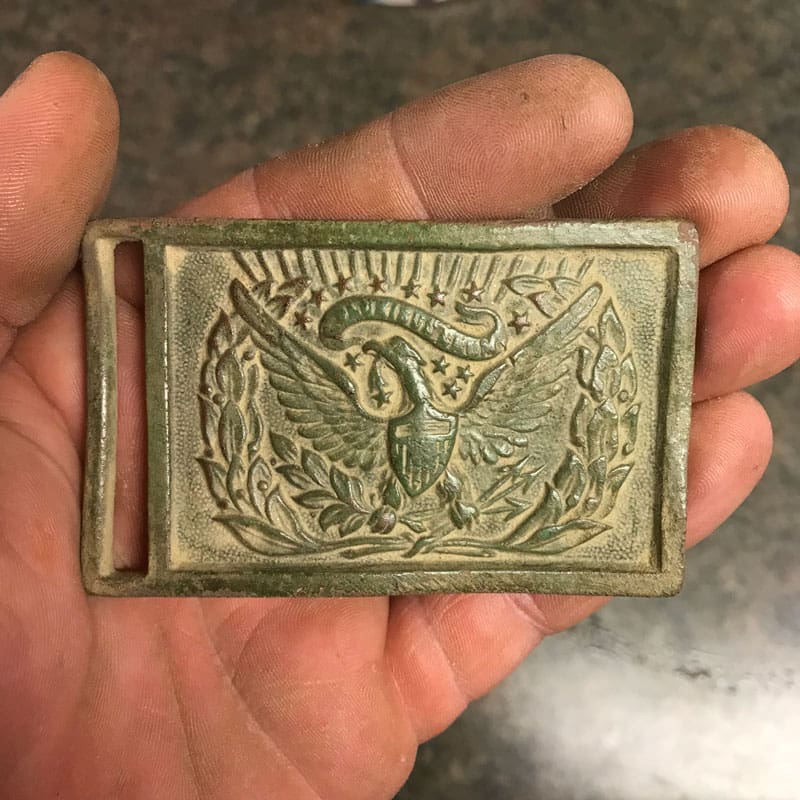 My second U.S. favorite find for January 2018 is the 1851 Federal Sword Plate, found by Bradley D. from North Carolina with his AT Pro.Bradley’s story: I just found my first Civil War Federal Sword plate on the last day of 2017! This 1851 model buckle was worn by Union Officers on a sword belt! I had no idea I would find such a cool relic when I set out to find property corners. I finished finding my stobs and decided to dig around the old chimney on the property and this turns up! There were only about 30 minutes of light, so I was only able to dig 14 targets. The plate was the last! I don’t get to dig much anymore so this is AWESOME! I can’t wait to research the old cabin site further! I own it, so it is not going anywhere! My Garrett AT-Pro and Pro-pointer are seven years old and still raking in the goods! Thank you for premium machines, Garrett!