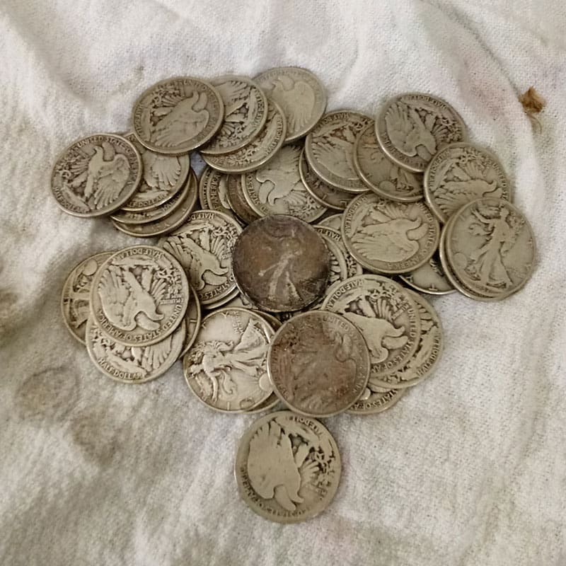 My U.S. favorite find for July 2018 is the 47 Walking Liberty Coins Stash, found by Ian M. from Ohio with his AT Pro.Ian’s story: This is and probably will be these best find for me ever! I wanted to search my buddies property that has been in his family since 1874. I wanted to find old coins and relics that tied into his family. I let my buddy use the Ace 200 until he was feeling comfortable with it. We were digging wheats up left and right. So then I let him use my AT Pro and he started hitting silvers and more wheats deeper. So while he was digging a deep target, I took my AT Pro and started swinging it. I came across an extremely high multiple target sound. I almost didn’t dig it because I was sure it was just a huge piece of iron. So I cut a plug and turned it over. I just sat there and stared at I don’t know how many Walkers! My buddy asked me what I found. I just said “Come over here”. We were very careful and picked out 47 Walking Liberties! It took us 2 hours just making sure we didn’t damage them. We’re only 10% done with his property. Coin count: 30 wheats, 3 barber dimes, 6 mercury dimes, 4 Roosevelt’s, 4 Washington’s, 2 Indian heads, 1 buffalo, and of course 47 walkers.