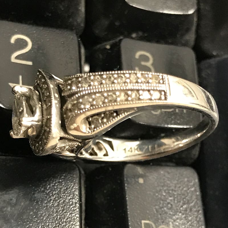 My U.S. favorite find is the White Gold Ring with Diamonds, found by Paul M. from Louisiana with his AT Gold.Paul’s story: I went out on a late after work hunt in the lake about a week ago. Started out chest deep, working along parallel to the beach. Started back waist deep now when I got a solid tone that was 45 no matter what direction you checked it. One scoop down and out it popped 6.3 grams of 14K white gold, 1 pear cut center diamond that is .4 cts, total of 59 diamond chips for a total weight of 1 ct. To say I was surprised would be an understatement. Thanks for such a great product.
