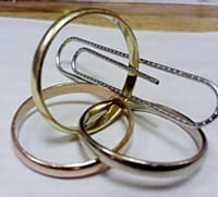 My favorite find this month is the three piece gold wedding band set. This 14k gold ring set is comprised of one yellow, one red, and one white gold ring, all three looped together. I consider this to be a very unique find and it goes to the man who discovered the glare of gold!Congrats to beach hunter James B. from Florida!