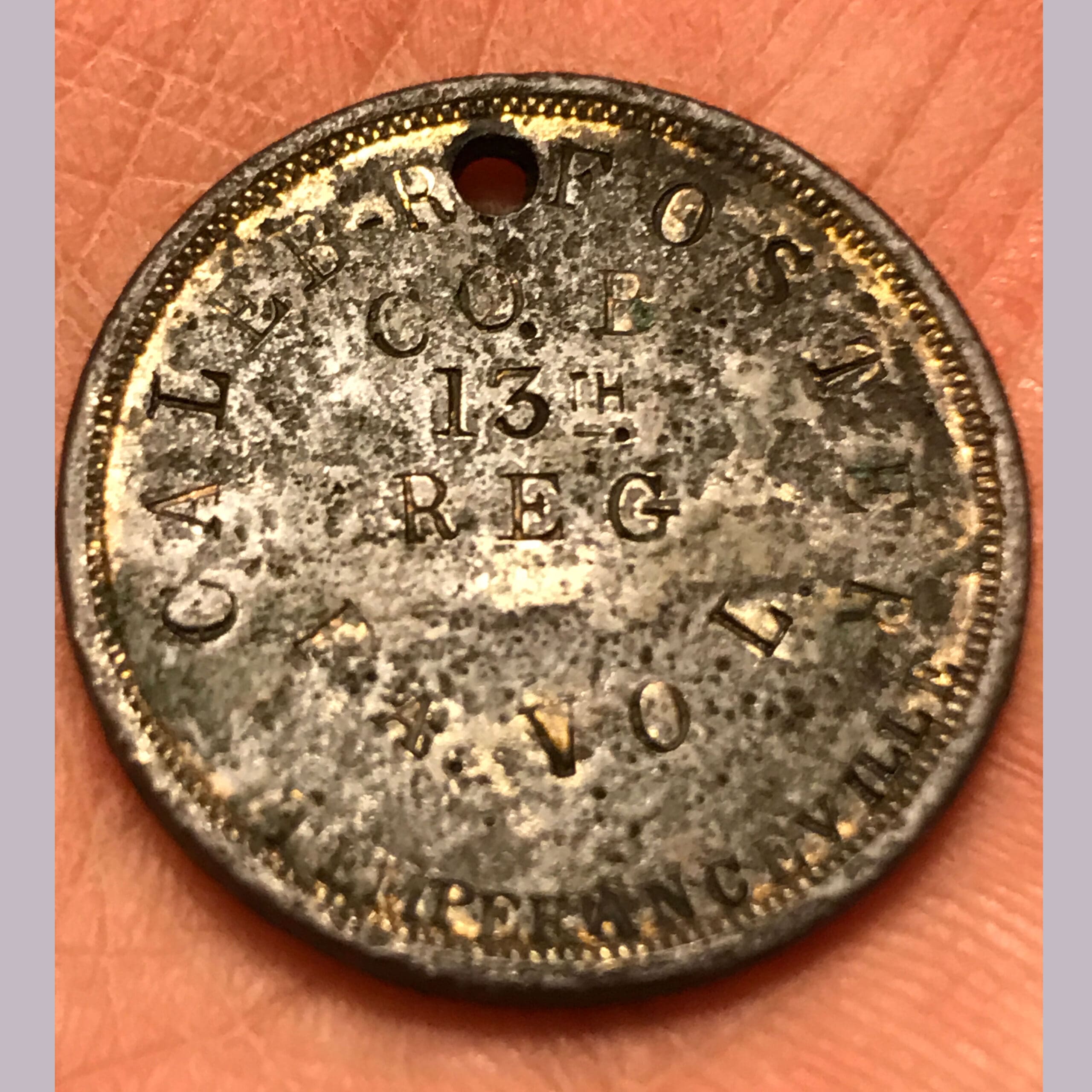 The back says Caleb R Foster CO. B, 13 reg, PA Vol Temperanceville. I found that Caleb R Foster was in the 102 regiment Pennsylvania infantry company B. He was wounded at Wilderness, VA. He mustered out with his company on June 28, 1865. He died at 78 from pneumonia and he is buried in Chartiers Cemetery.