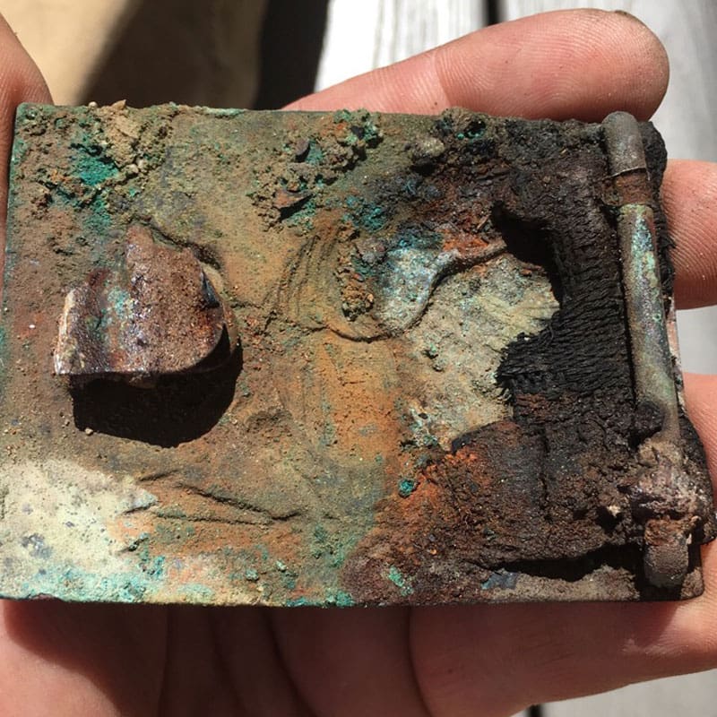 My U.S. favorite find for May 2018 is the Pre Civil War Militia Plate 1830-40, found by Thomas E. from Massachusetts with his AT Pro and carrot.Thomas’s story: I was out bottle digging a few weeks ago at a civil war era cellar hole. I rounded up my goods to head on out. As you know calling it quits (for the day) in this hobby is one of the hardest things to do, so I dropped my pack and put my coil to the ground. Having marginal success finding a few buttons and a large bell until this happened. My first belt plate! Amazing. Enjoy.