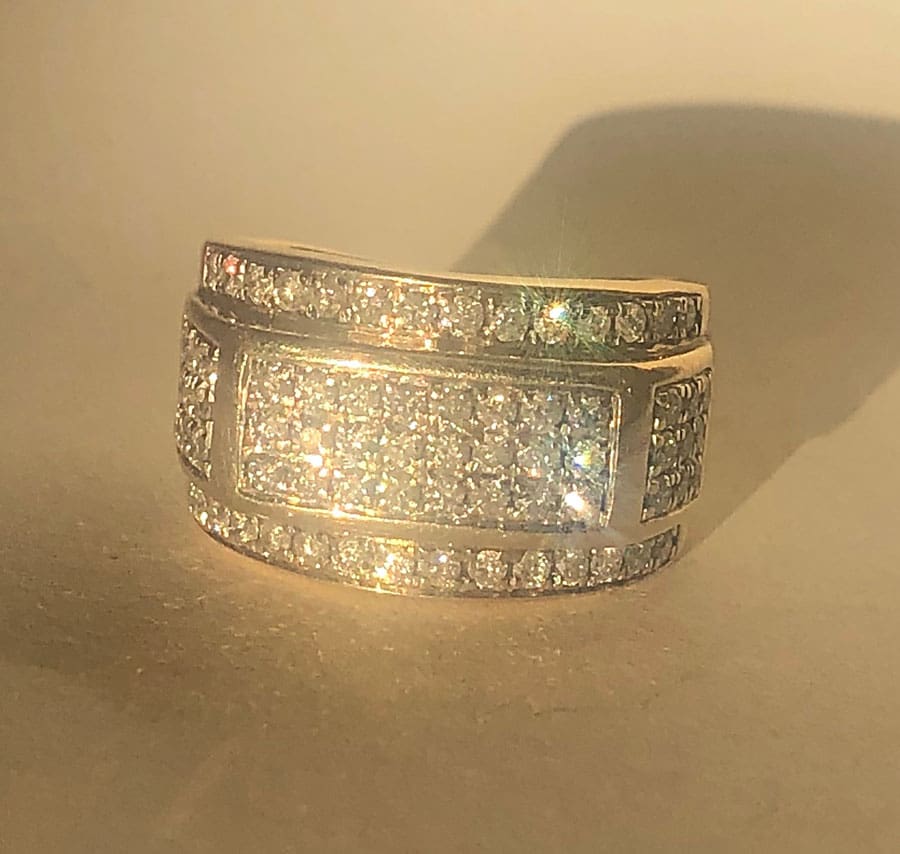 After about 10 minutes of swinging and on my SECOND hole of the day there it was. A gold diamond ring with 70 diamonds pops out of the plug and my jaw fell to the ground! I went straight home and fired up my diamond selector II and when the first diamond tested real, reality really started to sink in. I went through all 70 diamonds and they’re all real! Needless to say I’m glad I listened to those voices in my head that day!