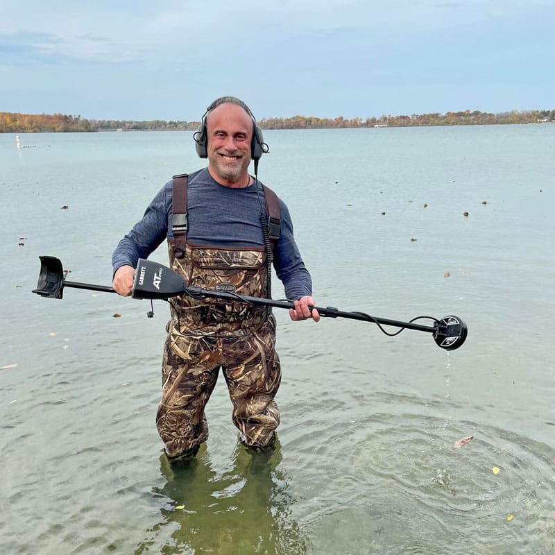 Congratulations to our US Favorite Finds winner David K. from Michigan!David and his son have been metal detecting together for years using Garrett equipment. On this day, they went to this old hotel location where people flocked to Michigan to cool off in the lake on a hot summer day. David found this location using a map from 1890! He was using his AT Max with the sniper coil because the water was knee-deep with a hard rock and clay bottom filled with trash that was hard to maneuver. He writes, “It was the best metal detecting day ever! The best find was a 1914 National Encampment Delegate medal, made of pewter or other corrosion-resistant metal. Other finds included a near-perfect key for a Model T automobile. It could have been from one of the Model T’s depicted in the old photo! In addition, we found a handful of turn-of-the-century coins, two old Cracker Jack toys, Buffalo Nickels, something called a collar button with the patent date of May 11, 1915, and a fancy engraved legging clip from an old bathing suit!”