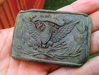 My favorite find for October 2015 is the Confederate Belt Plate, found by Craig W. from Virginia with his Ace 350.Craig’s story: “I live in a house built in 1838. I attended a civil war show this past July and purchased a Garrett Ace 350. Yesterday afternoon in my back yard just twenty feet from where I park the car, I dug this C.S. tongue of a two piece confederate interlocking sword belt plate. You can see in the photographs how the plate actually molded the clay to the shape and form of the buckle. The Pro-Pointer was a must in this recovery. This was truly a life thrilling, heart pounding find and I am proud to share it! Thank you Garrett for an easy to use great machine, the Ace 350!”