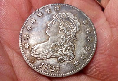 My third favorite find for October 2015 is the 1828 Capped Bust Quarter, found by Wayne C. from New Hampshire with his AT Pro with the 5×8 DD coil.Wayne’s story: “After hours of detecting with a group in Vermont using big coils, I scanned an area full of nail signals and grunts that they had just swept over, and was still learning how to separate the signals. I was able to isolate an 82-85 even in the thick of the nails so at this point I was not only impressed with the 5×8 coil, I was glad I purchased it. Then I proceeded to dig and was not prepared for what was in the hole. It turns out I found a rare 1828 capped bust quarter in immaculate condition considering it came from the dirt. My mind was blown and I truly owe the credit to my equipment cause I am fairly new to the hobby and this is a sought after coin by seasoned professionals. So thanks Garrett for your outstanding products that make this hobby/obsession so great.”