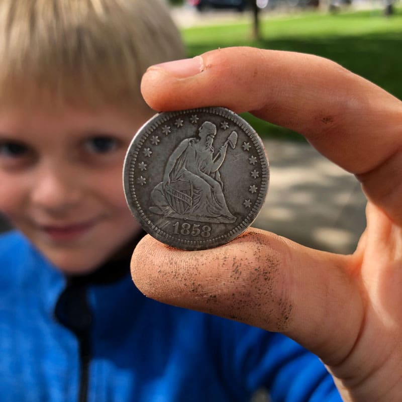 My second U.S. fav find for October 2018 is the 1858 Seated Liberty Quarter, found by Alex R. from Michigan with his Ace 300.Alex’s story: Hi, my name is Alex and I am 8 years old. I have been metal detecting for about 1 year. I was on vacation with my family and we went to a town nearby to ask permission to detect in some yards. We found an old house across from the town square and started detecting. We found a few cool finds but nothing great. I was swinging under an old tree (where Nugget Noggin says to look) and got a solid 83/84 signal on our ACE 300. My dad and I started digging thinking it would be a penny. We were SHOCKED when we saw silver in the side of the hole. It was face up so we could see the seated liberty! I screamed and rolled on the ground. I was yelling “ITS A SEATED LIBERTY”. We pulled it out of the hole and it was from 1858! I was excited for the whole weekend! It is my best find so far. Alex R. (and Dad)